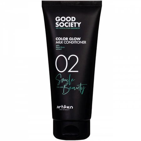 Odżywka  Artego Good Society 02 Color Glow Milk  to delikatna pielęgnacja zapewniająca promienny blask koloru. Formuła z olejkiem jojoba regeneruje włókno włosa, rozczesuje i nadaje włosom połysk bez ich obciążania. Odżywka nawilża włosy i chroni kolor włosów przed blaknięciem.
