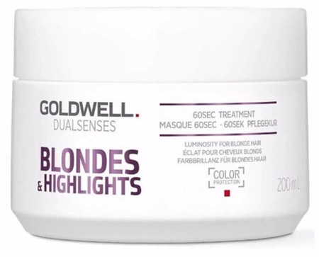 60-sekundowa kuracja Goldwell Dualsenses Blondes&Highlights powstała z myślą o włosach blond lub z pasemkami. Jej głównym zadaniem jest neutralizowanie niechcianych żółtych odcieni oraz mocna regeneracja włosów. Ponadto świetnie wydobywa połysk koloru. Swoje działanie opiera na technologii microPROtec complex z wbudowaną ochroną koloru, która w równomierny sposób rozprowadza składniki pielęgnacyjne. Dzięki temu efekt odżywienia jest odczuwalny natychmiast. Ponadto udoskonalona FadeStopFormula redukuje wypłukiwanie się koloru w trakcie mycia włosów. Całkowitą innowacją zastosowaną w tej serii jest technologia Luminescine, która przemienia niewidzialne światło UV w widoczne światło dla niezrównanej promienistości koloru.